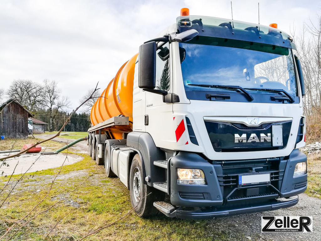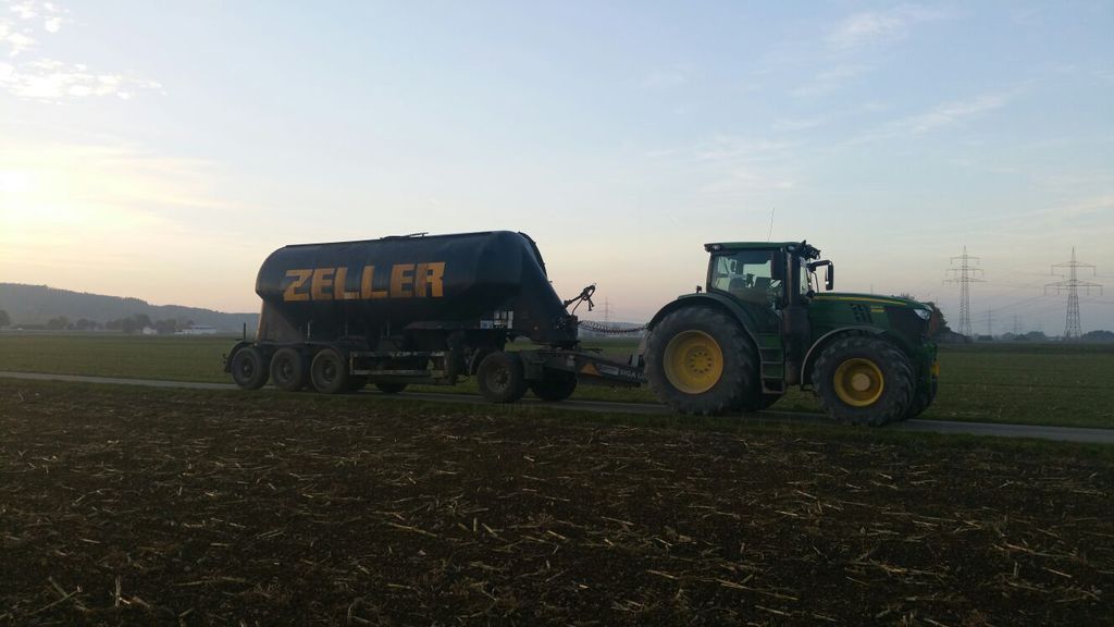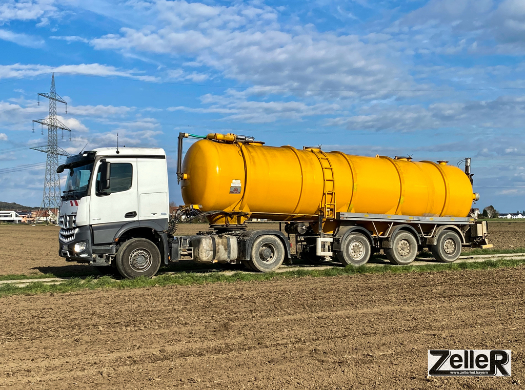 Mit mehreren Gülletransportfässern fahren wir Gülle zu entfernt gelegenen Feldern oder Güllegruben.